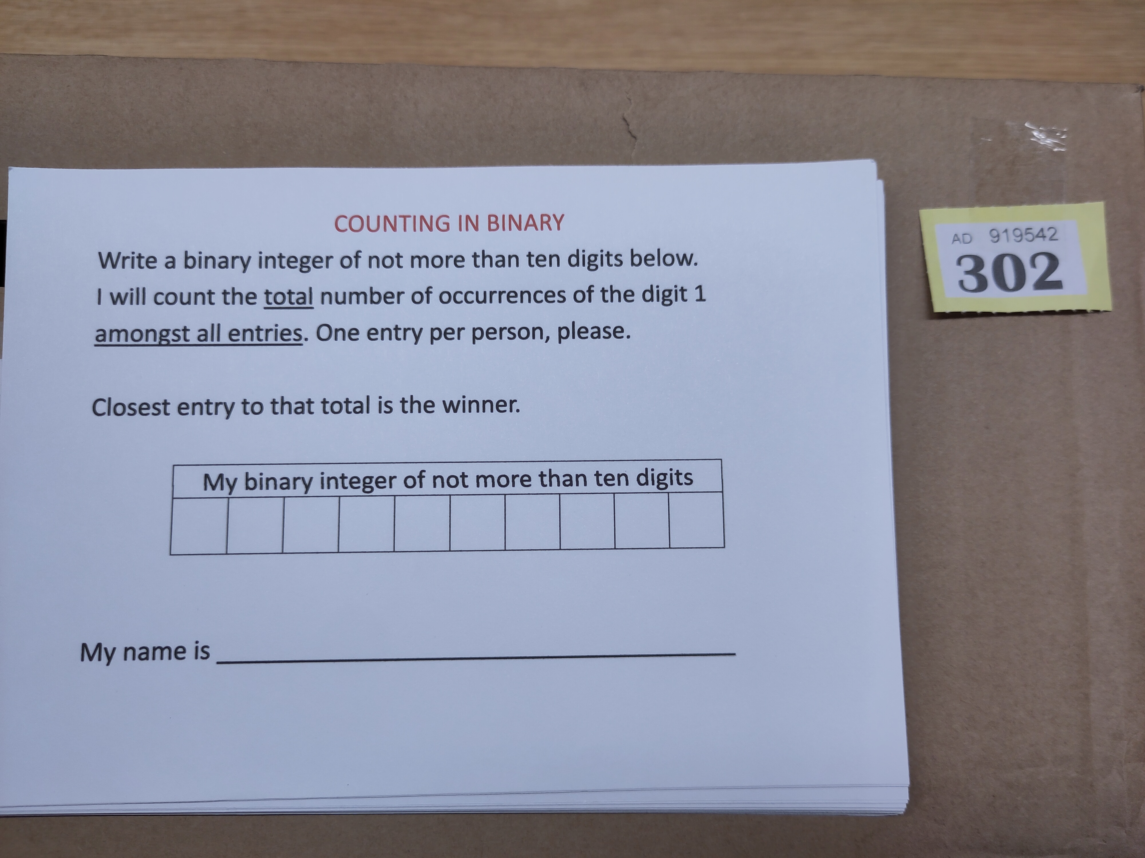 Form to enter the competitions